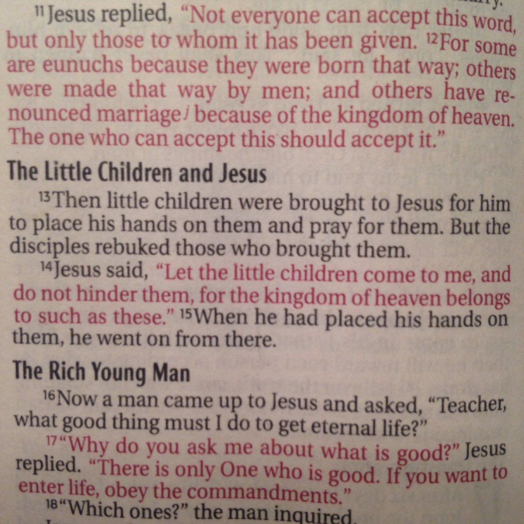 One of Jesus’ most famous teachings was when He said “…Let the children come to me. Don’t stop them! For the Kingdom of Heaven belongs to those who are like these children” (NLT- Matthew 19:14).